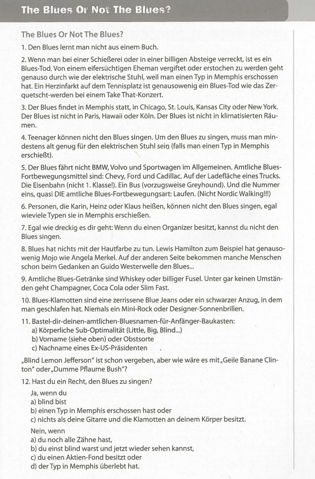 Anbei hier noch einmal AUSDRÜCKLICH NICHT ERNST (!) gemeinten Regeln für den Blues: