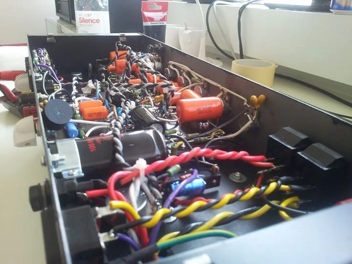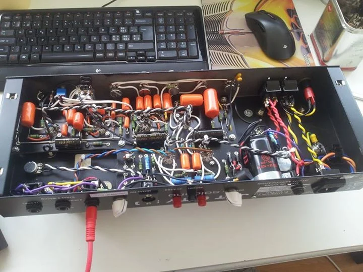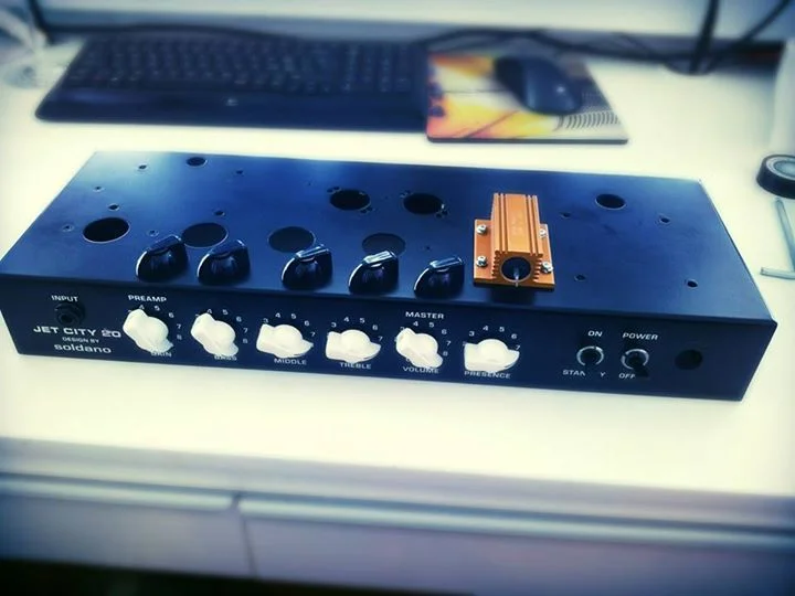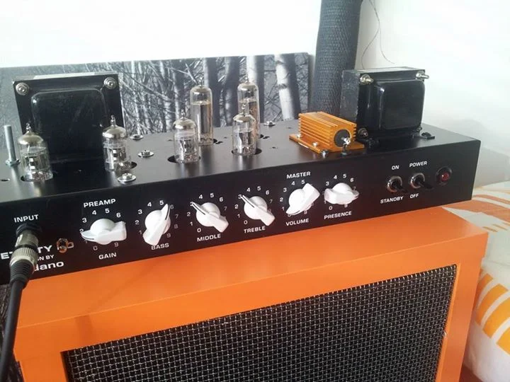 Habe ja schon nen VHT Deliverance nachgebaut. Jetzt wollte ich mal ein Bogner Uberschall Klon bauen. In der Endstufe arbeiten jedoch zwei EL84, da der Amp vorallem für zu Hause gedacht ist. Zusätzlich wurde ein Rec-Out mit Lastwiderstand eingebaut, der automatisch aktiviert ist, sollte man mal vergessen ne Box anzuschliessen. EIn Depth-Regler wurde auf der Rèckseite noch hinzugefügt, da der Bogner in den Tiefmitten je nach Cab etwas "honky" sein kann.