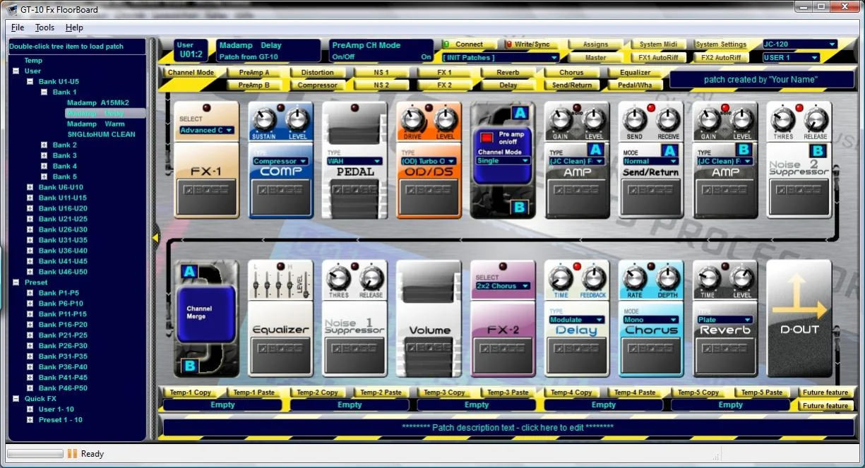 Kann mir jemand die FX-Chain posten. ich möchte mit Chanel A über meinen DSL spielen und mit Chanel B einen GT-10 ceanen Preamp nutzen, oder kann ich das nicht in einem Patch nutzen?