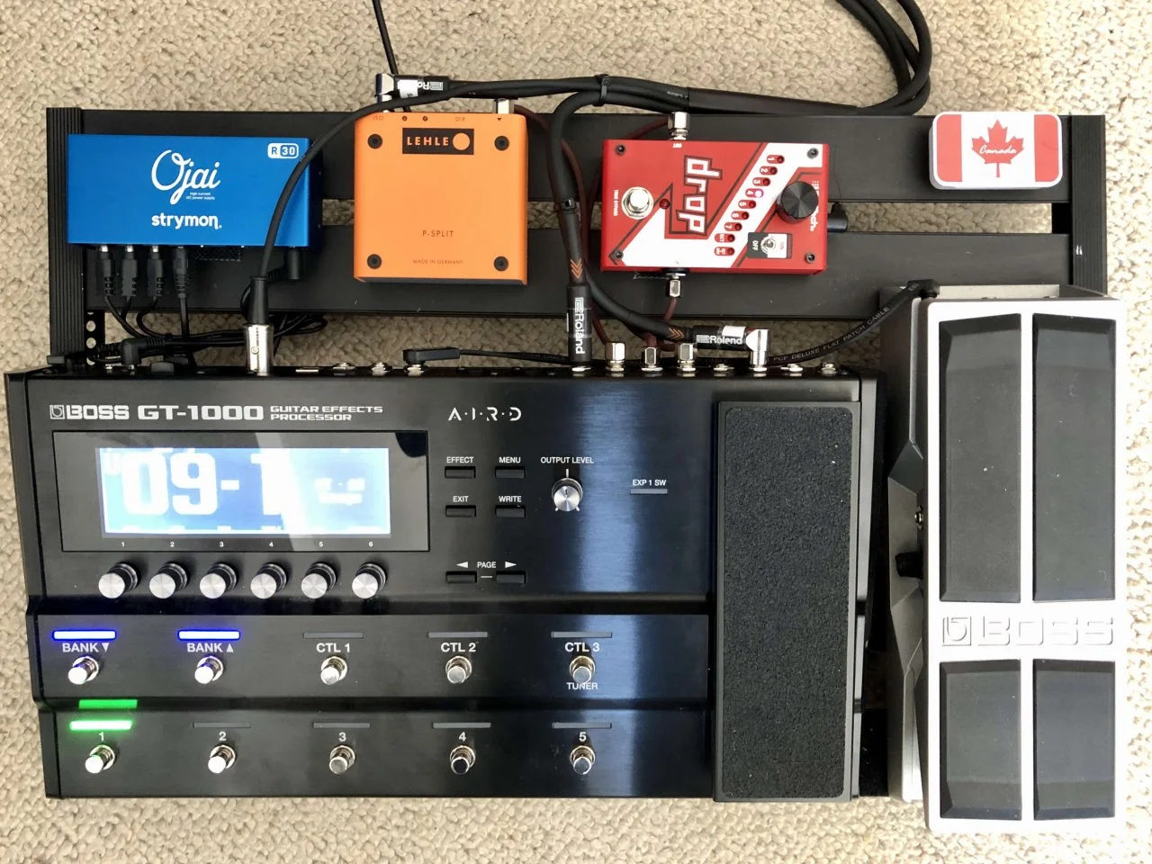 Da bei den BOSS Multi-FX die Stromversorgung technisch nicht einwandfrei gelöst ist (externe Netzteile, die Strombuchse am Gerät kann brechen/kaputt gehen), habe ich das onboard gelöst mit dem Strymon Ojai.