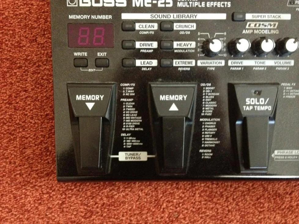 Bei meinem Boss ME-25 hängt der Fußschalter um zwischen den Presets umschalten zu können.