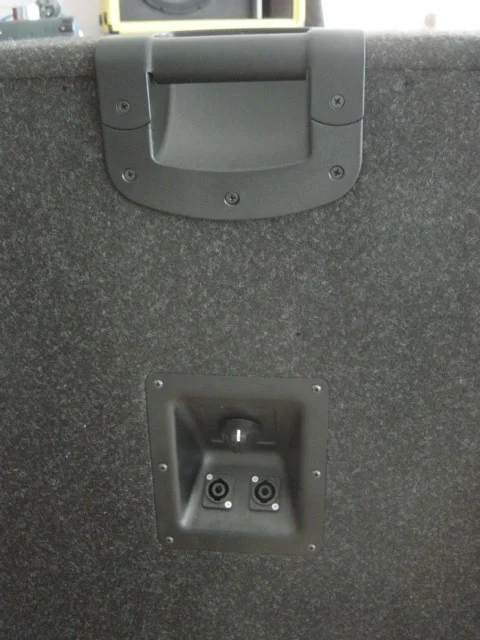 versenkte Anschlussplatte mit 2 Speakons. Maße: 102cm hoch, 60cm breit und 40cm