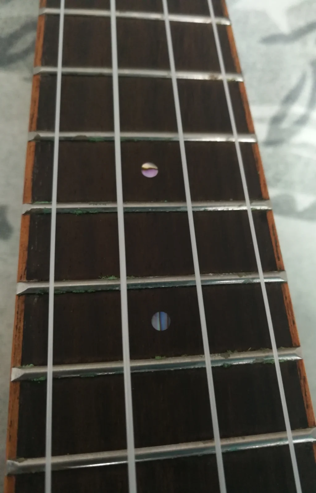 hatte mir bei den Thomann Oster-angeboten eine Ukulele gekauft. Das Teil ist nun hier und weist an vielen Bünden so grüne Verkrustungen auf 🙄. Sie scheinen eher an den Seiten der Bünde nahe des Griffbretts zu sein.