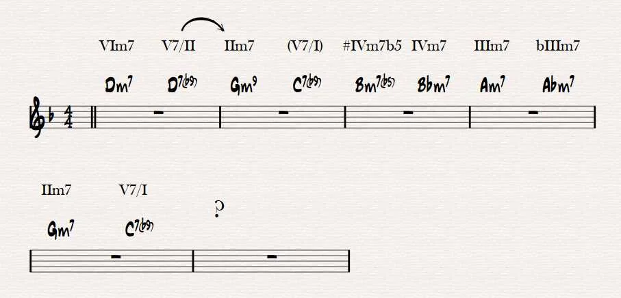 in einem momentan geübten Klavierstück habe ich die Endung über eine II-V