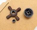 Eben hab ich mich des Tone Potiknopfes angenommen. Ich hatte dieses Rad auf dem Dachboden von irgendeinerkleinen Mühle abgeschraubt. Ich habe von einem der Original Knöpfe einfach das Innere ausgesägt und in das Rad gedreht. Noch ein Tropfen Sekundenkleber und es ist fest. Da ich doch keine Push / Push Potis verbaue genügt das. Ansonsten hätte ich ein Gewinde geschnitten und eine Madenschraube verwendet.