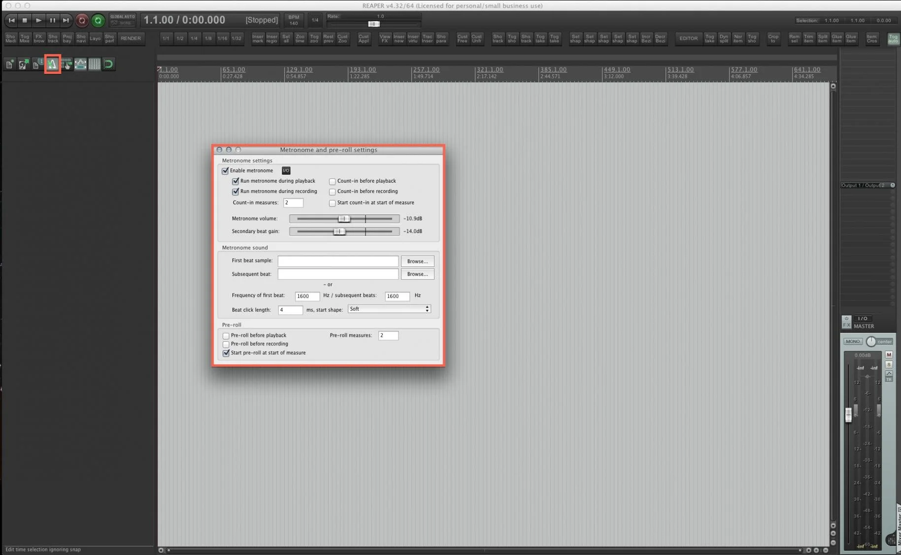 Nur in Reaper habe ich folgendes Problem: Wenn ich zb. bei 200 BPM ein click-track einfüge, und den auf 150 runterstelle (Per bpm Regler unter den Spuren), klingt der click ganz anders, hat aussetzer etc. total komisch...