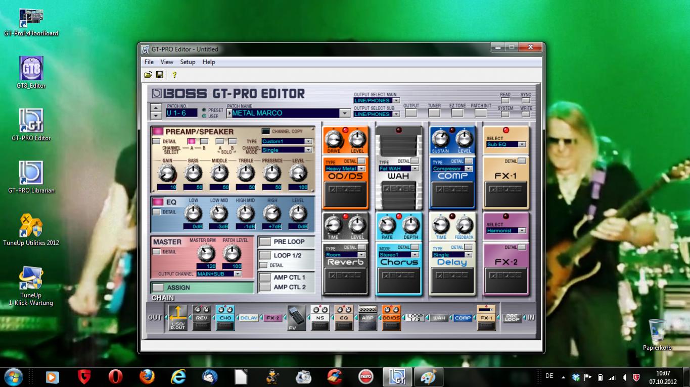 Hallo, und zwar bin ich ein Boss GT 8 User. Ich weiß nicht ob das richtig ist, jedoch gibt es ja schon einen Boss GT 8 Tread. Leider fehlt mir dort der Austausch von Patches - also von selbst erstellten Effekt Presets die man untereinander tauschen könnte. Ich würde mich freuen wenn es auch andere User geben würde die gerne ihre eigen erstellten Patches vorstellen würden und auch eine Anleitung geben könnten wir sie diese erstellt haben. (Step by Step)