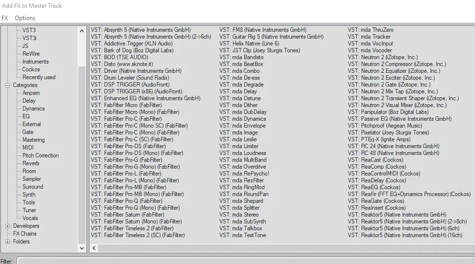 Die nötigen VST sind im FX-Ordner untergebracht und Reaper hat den Pfad dorthin zum finden des ganzen.