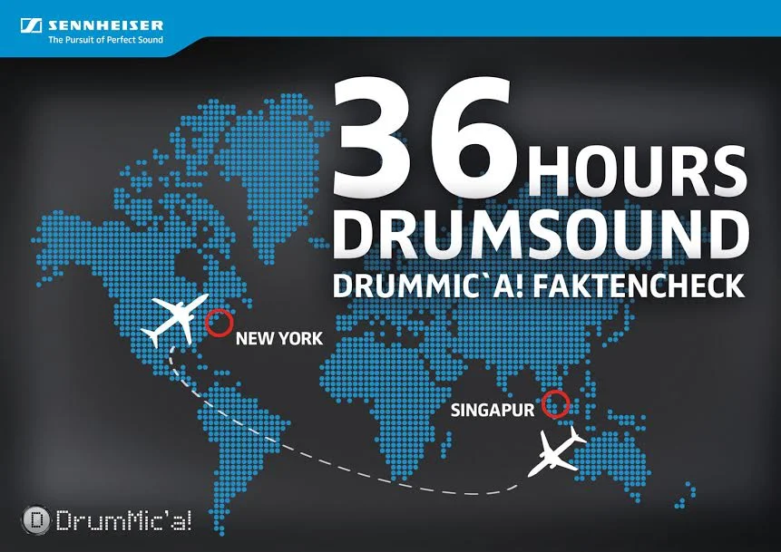 "DrumMic'a!" ist aus 13.000 Soundschnipseln zusammengesetzt. Würde man all diese Samples aneinanderreihen, ergäbe das 36 Stunden lang Drumsound am Stück. So lange, wie der bislang längste Nonstop-Linienflug der Welt von Singapur nach New York dauert - und zwar hin und zurück. Mehr Faktenchecks zum "DrumMic'a!" sowie ein Recording ABC gibt es auch auf der Facebook Seite von Sennheiser unter www.facebook.com/SennheiserDeutschland.