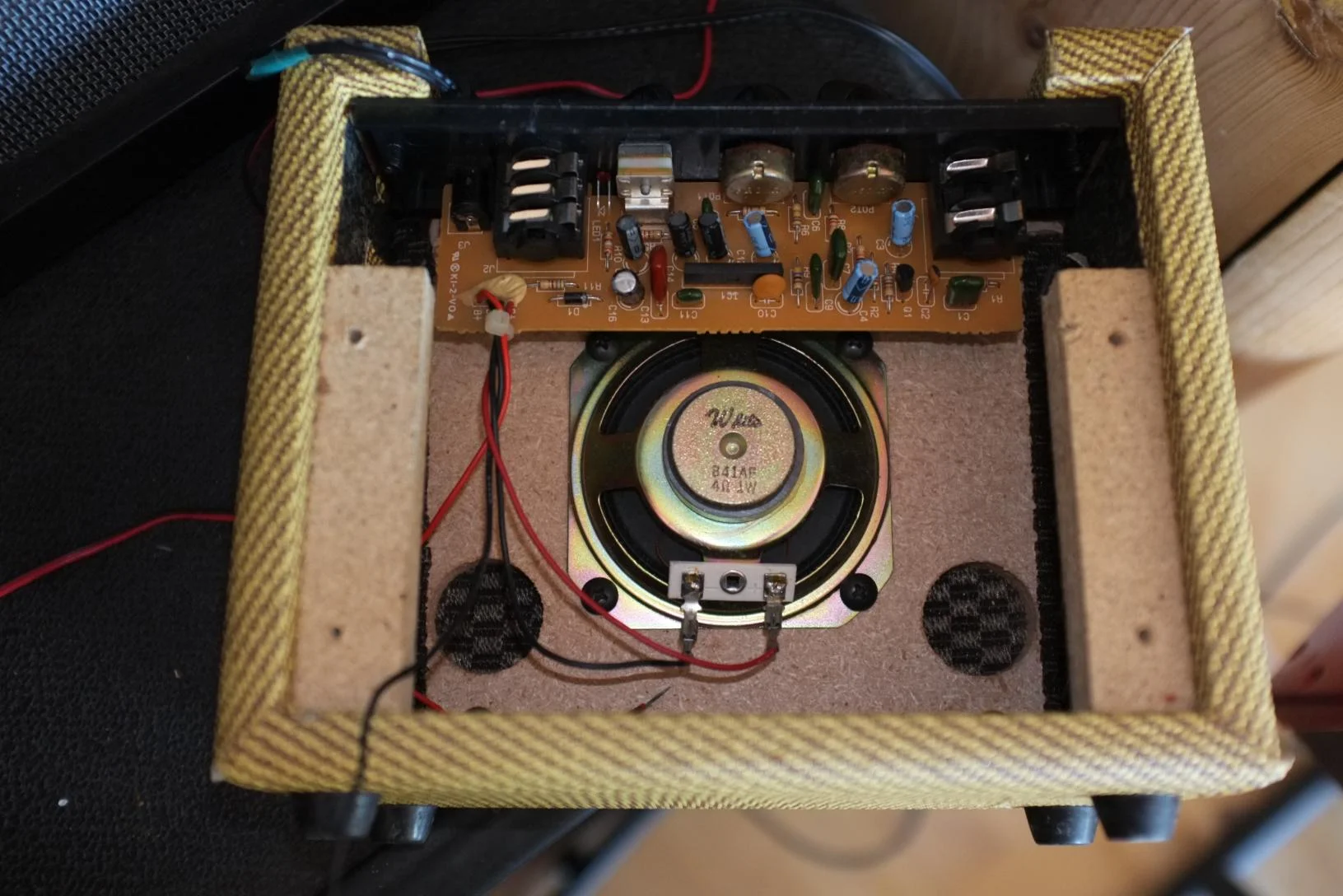 Aber mit Kopfhörern war der Sound eigentlich sehr in Ordnung, auch die Zerre war überraschend warm. Also hab ich das Ding mal aufgeschraubt.