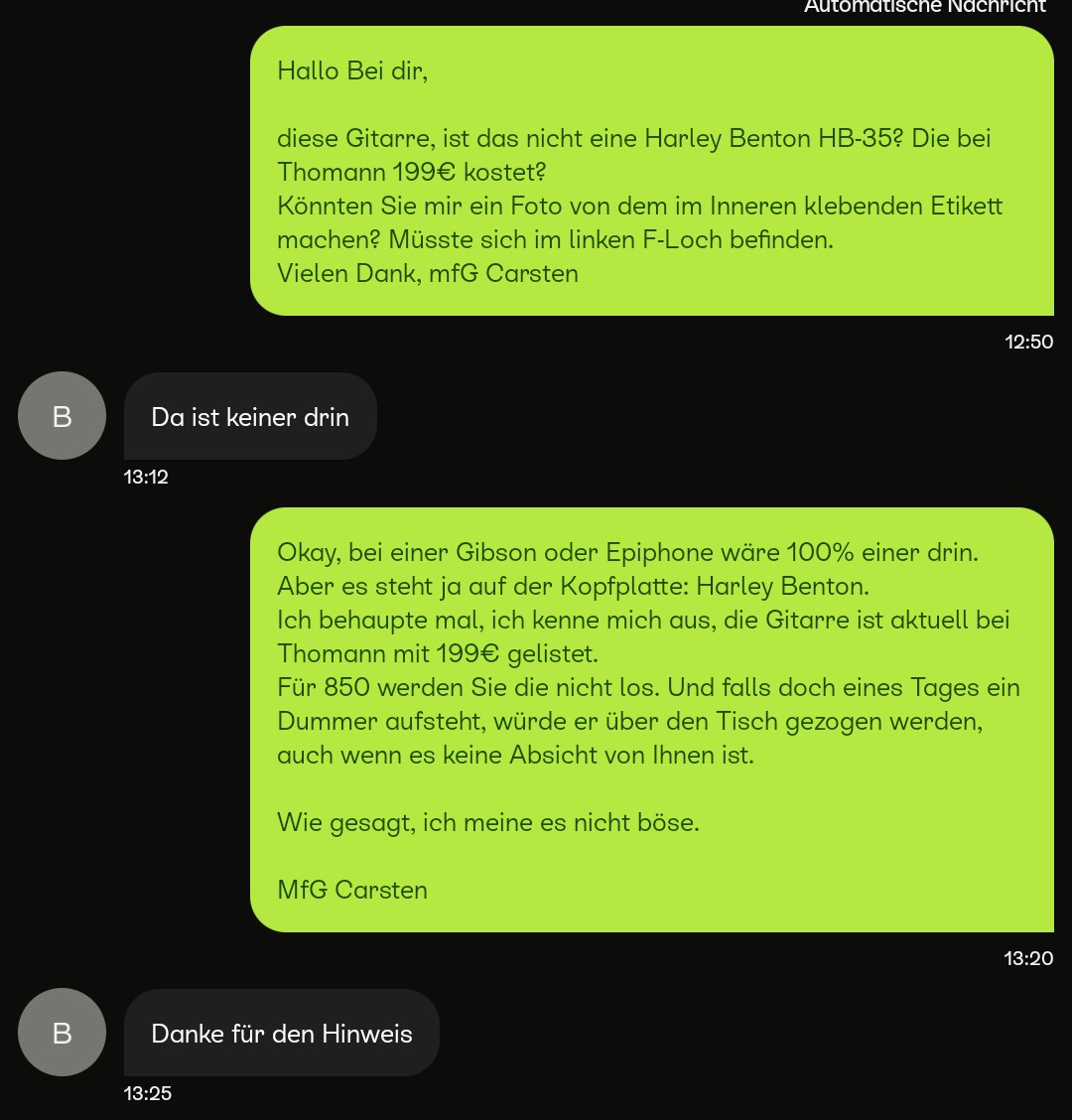 Die Harley Benton ES335 Kopie, desselben Anbieters scheint auch was ganz besonderes zu sein, soll immerhin 850,- € kosten ...