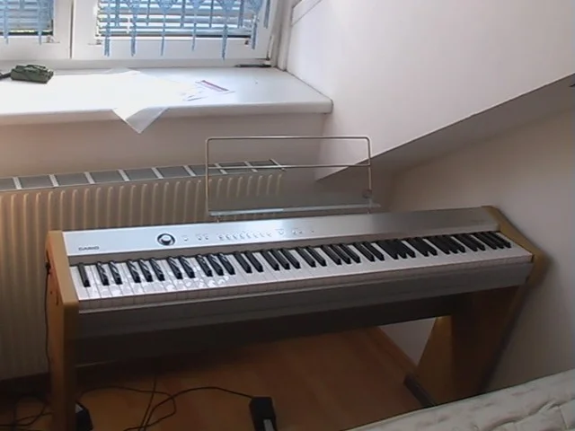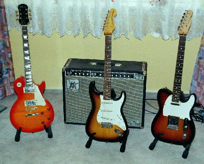 Fazit: Das teil macht irre spaß und dafür hab ich ihn mir ja auch schließlich gekauft. Die großen wird er sicher nicht ersetzen können, aber das einstöpseln gitarre aufdrehen und gut ist - ist auch mal ne nette Erfahrung. Übrigens steht er inzwischen auf meinem Memthree verstärker drauf, da oben passt er perfekt hin - im vordergrund mein 5 Fach Ständer mit den Klampfen *g*......