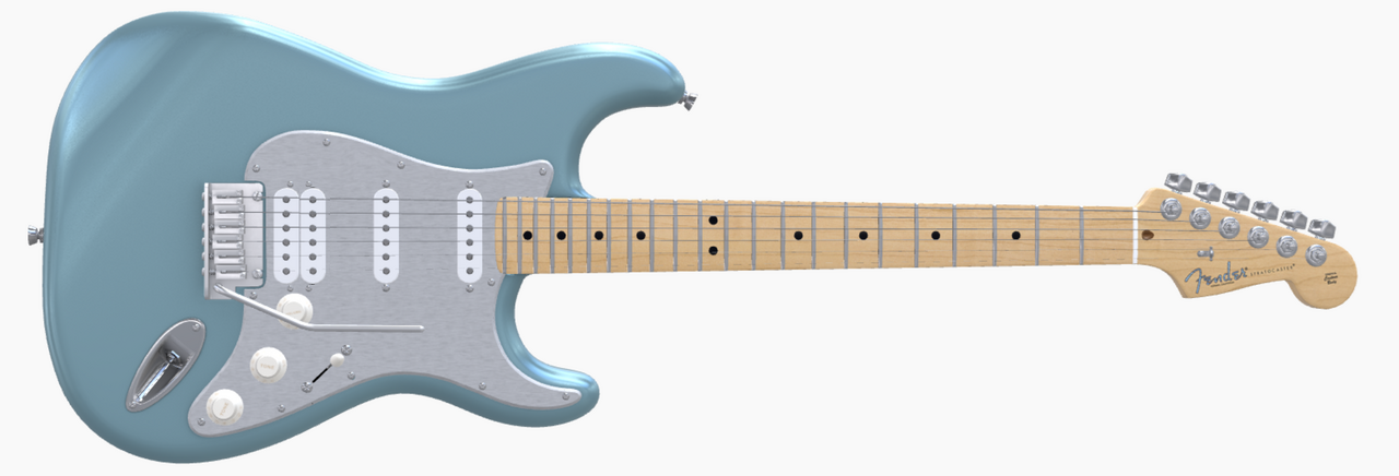 Ich möchte eine Fender HSS in Tidepool mit dem Alu Pickguard kampfwertsteigern. Ein neues Tremolo mit Bar ohne Kappe liegt bereits in der Schublade. Bei der Hardware gibt es zwei Optionen: