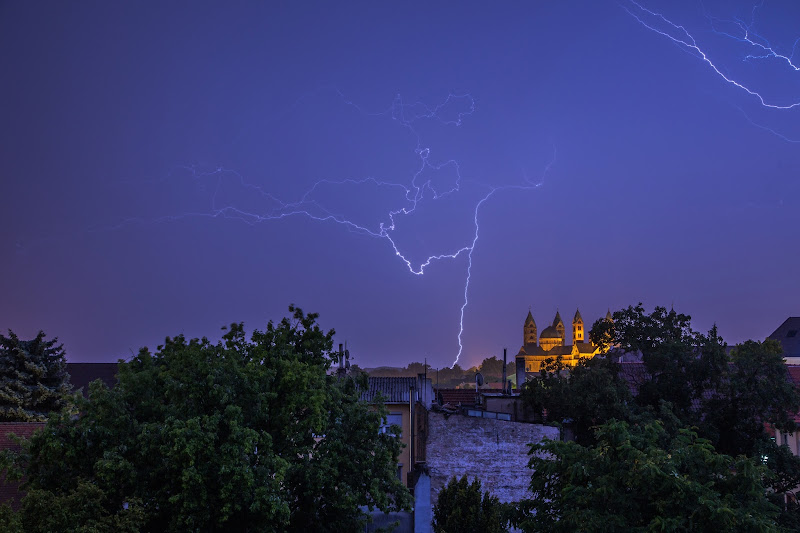 Es ist immer klar, dass ein Gewitter aufhört, sobald die Kamera steht - aber einmal hatte ich dann doch Glück, auch wenn der größte Teil des doch recht mickrigen Gewitters vorbei war. Mein erster ganz annehmbarer Blitz-Treffer seit 2011 - wenn die Bilder von damals auch etwas stärker waren.