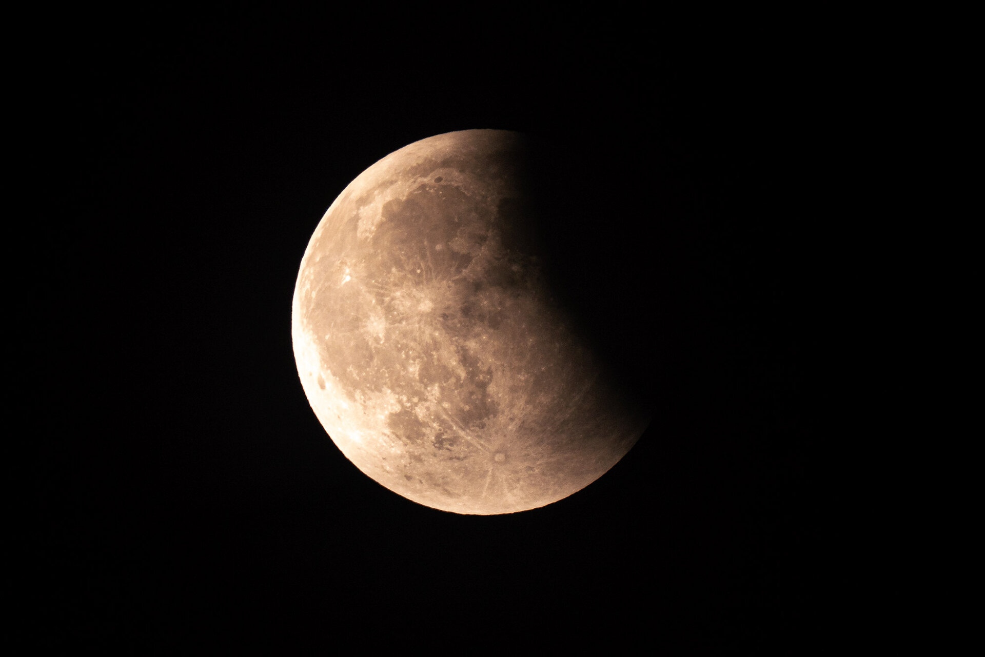 Die gestrige Mondfinsternis: Rechts, das ist der Erdschatten.