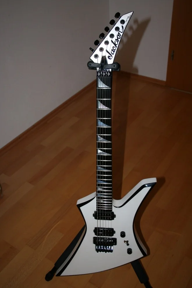 Umso mehr ich die SLSMG spiele, umso begeisterter bin ich. Das ist unglaublich, wie definiert sie bleibt und wie gut sie jede Note auflößt, da kann die LTD nicht mithalten. Die Jackson-Tuner halten, entgegen meinen Erwartungen, die Stimmung ziemlich gut. Der Hals könnte zwar ein bisschen weniger breit sein und die Bünde etwas größer, alles in allem aber ein super Instrument