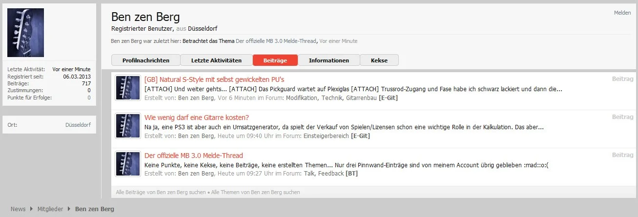Keine Punkte, keine Kekse, keine Beiträge, keine erstellten Themen... Nur drei Pinnwand-Einträge sind von meinem Account übrig geblieben 😡🙁