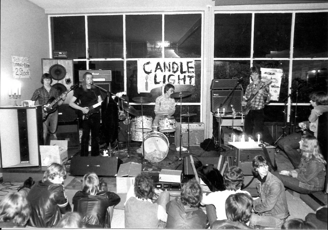 Die Beschreibung klingt mir weniger nach Krautrock (Can, Amon Düül II, Guru Guru, Grobschnitt etc., also deutscher Prog Rock), sondern mehr nach härterem, geraderem Rock deutscher Machart, also entweder die von Westernhagen besungene "Rolling-Stones-Kopie", nur eben in semipro mit eigenen Songs, oder generell Hard Rock.