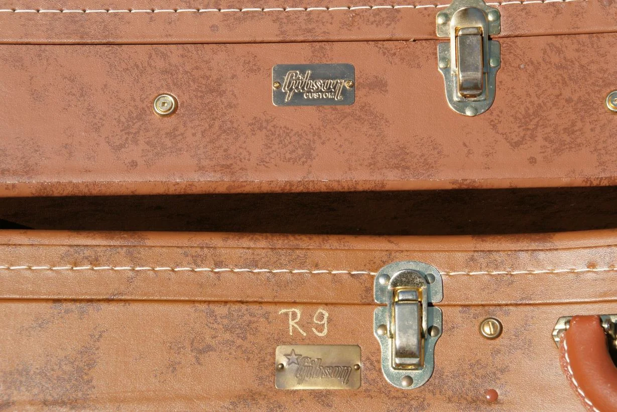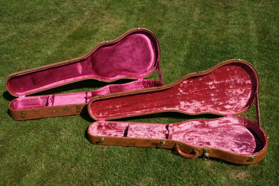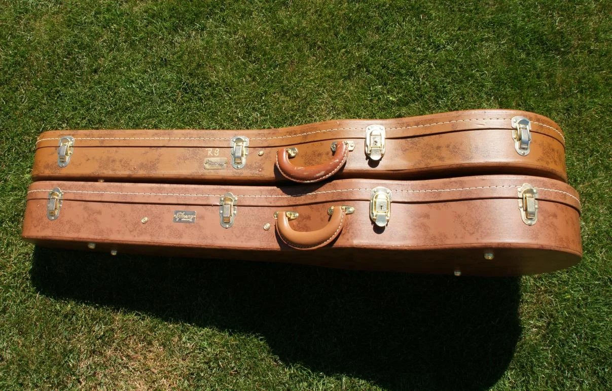 Hier jetzt noch einige Fotos mit meinem Case von 1999, 2007 und einem originalen "Burst"-Case aus den späten 1950er Jahren. Alles sind original 5-Latch-Cases, also mit 5 Verschlüssen! Es gab damals auch welche mit 4 Verschlüssen, jedoch erreichen die mit 5 Verschlüssen deutlich hörere Sammlerwerte.