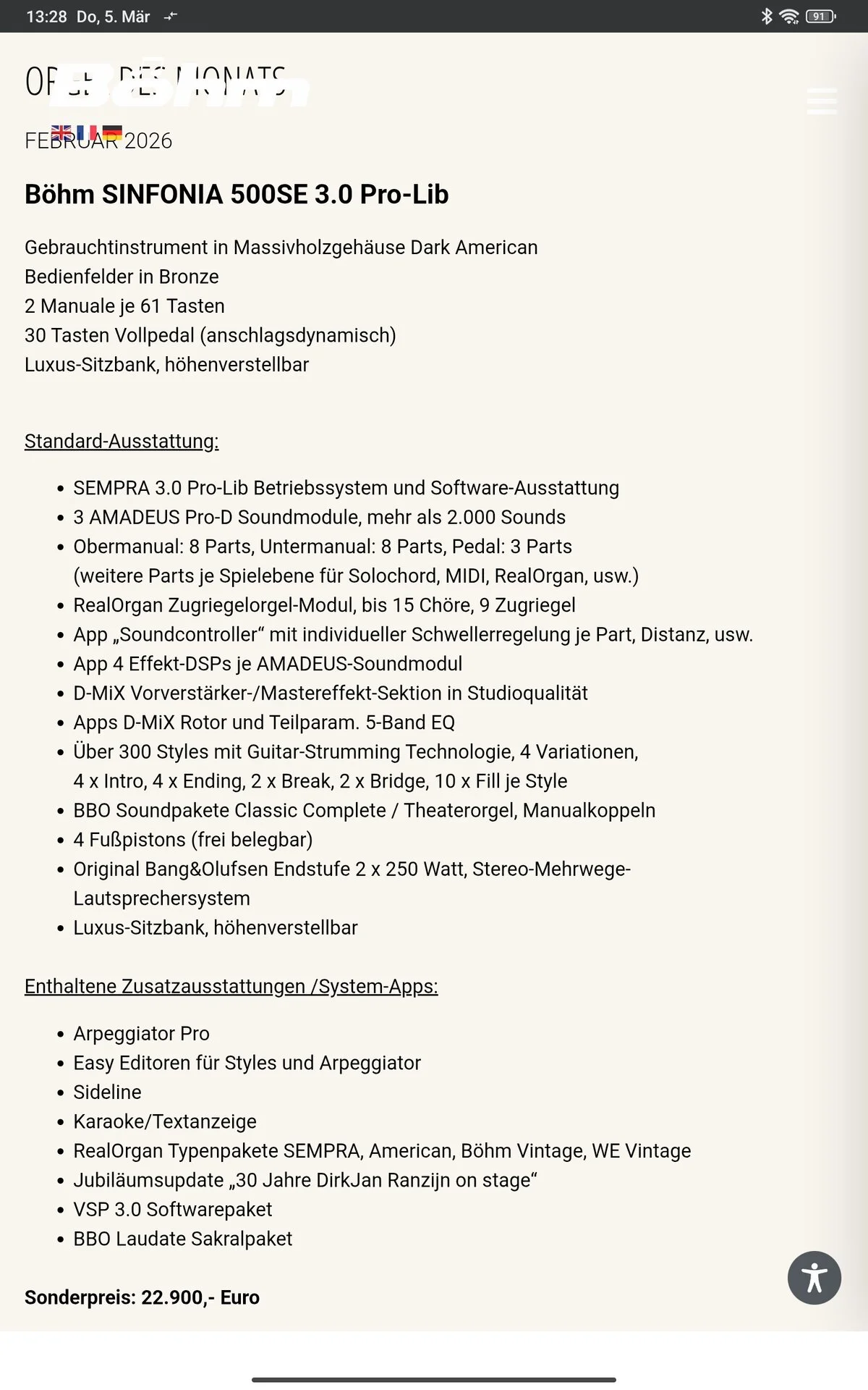 Ich gönne so eine Orgel jedem, der sie sich leisten kann und sein Eigen nennen möchte. Auch, wenn hier Preis und Leistung im Vergleich zu anderen Produkten am Markt in keinem Verhältnis stehen.