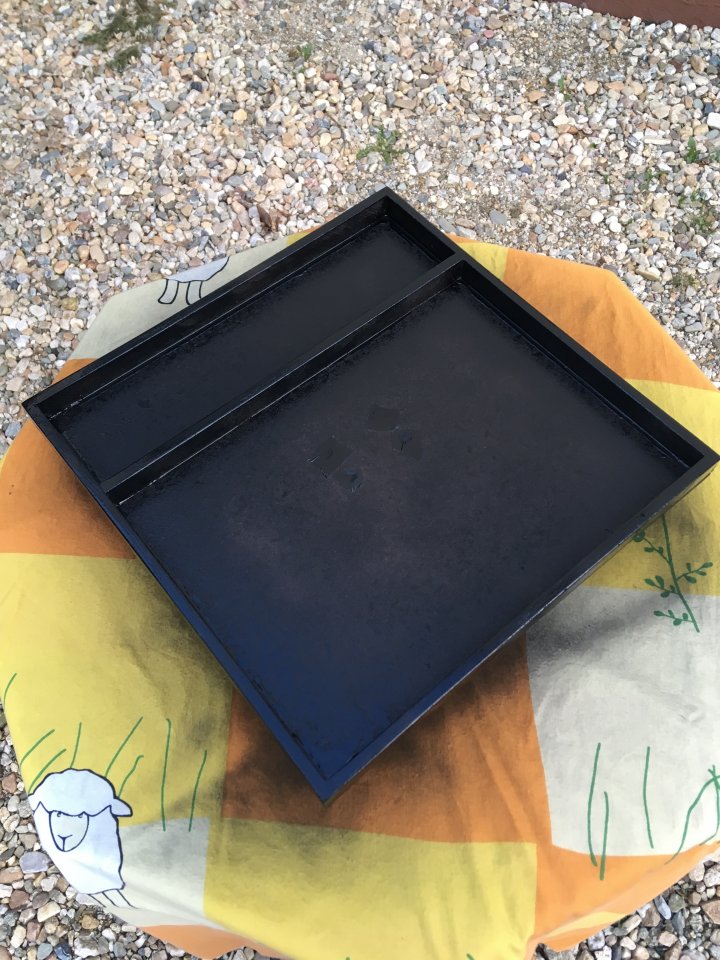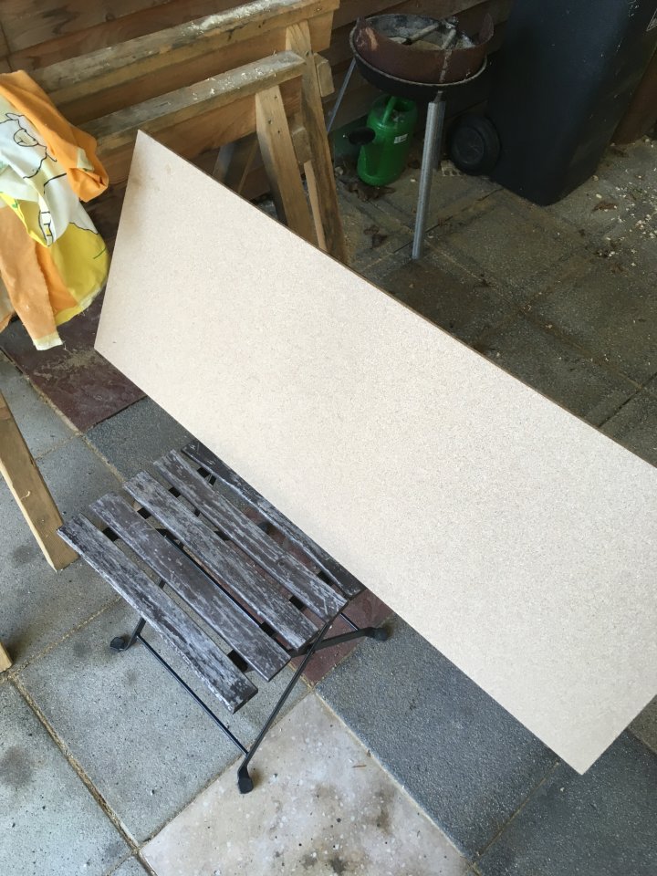 Die Platte gab es fĂŒr 0,50 ⏠beim Baumarkt, die Leiste hatte ich noch zu Hause.