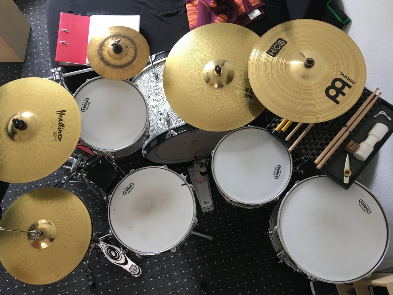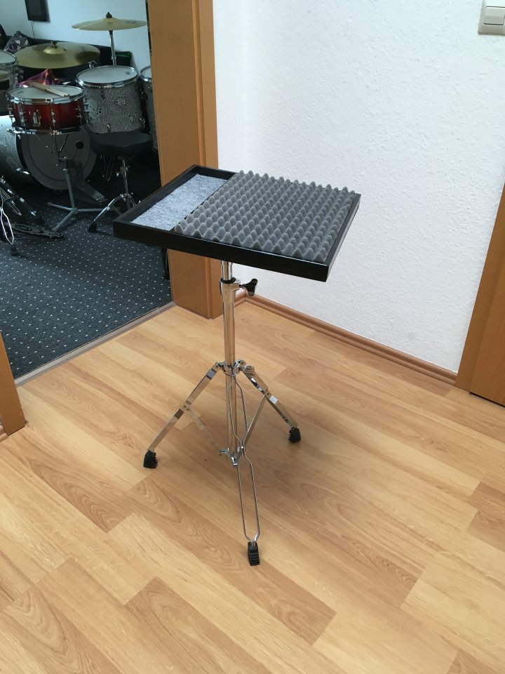 Ich hatte eine Aushilfe bei einem Serenadenkonzert und musste etwas zwischen Pauken, Percussion und Drumset wechseln. Um das effizient zu gestalten habe ich mir kurzerhand eine kleine Ablage gebaut. Die, die es zu kaufen gibt waren mit nicht flexibel genug und zudem viel zu teuer. Hier einmal ein kurzer Abriss der Umsetzung