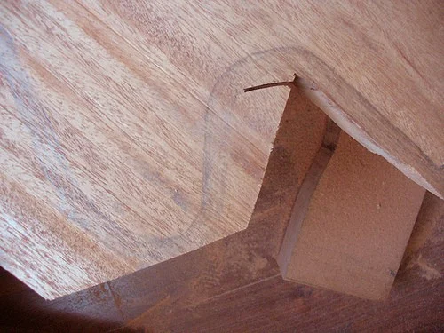 Das Raspeln wird ganz klar eine langwierige und anstrengende Angelegenheit werden weil ich so viel Spiel beim sägen gelassen hab, aber besser zu viel Holz am Korpus als durch zu knapp bemessenes Sägen zu wenig. Der ganze Korpus wiegt so wie er jetzt ist (also nur grob ausgesägt) 2940 Gramm.