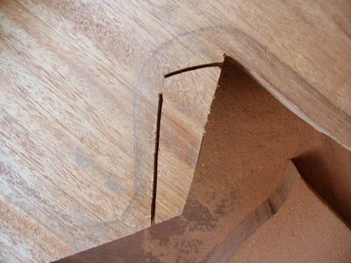 Foxytoms Vorschlag, in den engen Kurven Bohrungen vorzunehmen damit man möglichst nur gerade Bahnen mit der Stichsäge sägen kann ist auf jeden Fall sehr gut, aber mangels einem Bohrständer konnte ich es leider nicht so machen, ich denke aber das hätte mir vieles erleichtert: Gerade die Kurven waren mit der Stichsäge sehr schwer zu sägen, daher habe ich sie von zwei Seiten zugeschnitten, was sehr zeitaufwändig war, das sieht man z.B. auf Bild 2,3 und 4.