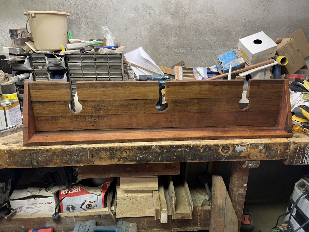 i) etwas Holzlasur ("Grabbelkiste" / Reste vom Gartenschuppen