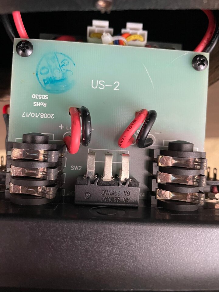 da die so ne coole Jackplate mit Mono / Stereo Schalter hatte kann ich nun sogar Mono ( alle Drei Speaker zusammen 16 Ohm ) oder "Stereo" Getrennt 8 Ohm 2x12er oder 8 Ohm 1x15er 8 Ohm nutzen