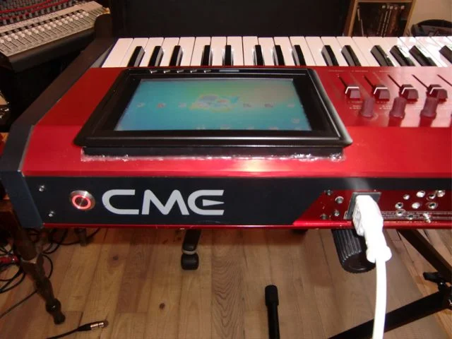 In die Oberseite des CME habe ich einen 8" LCD TFT Touchscreen eingebaut. Dafür habe ich aus dem Gehäuse mit einer feinen Trennscheibe ein passendes Stück herausgeschnitten, sodass der TFT pressgenau hält. Die Ränder sind von innen und auf der Rückseite mit Heißkleber verklebt.