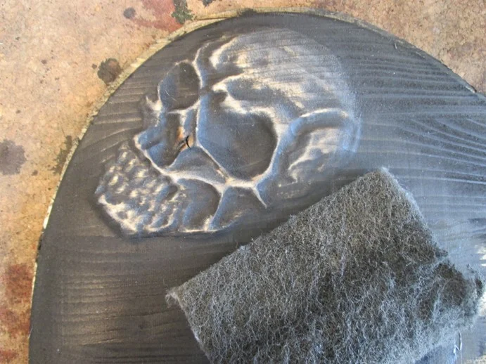 Das deutlich bekanntere Gegenstück (wenn auch nicht bewusst) zur Trockenbürsttechnik ist der sogenannte Reliefschliff. Hier werden Erhebungen und Reliefs betont indem mal von ihnen die Farbe herunterschleift/bürstet/poliert. Der Reliefschliff wird oft bei Schmuckstücken verwendet und ist auch das, was mit Objekten in der Natur auf ganz natürlichem Wege durch Benutzung/Abnutzung passiert. Die Technik ist noch etwas einfacher.... man färbt den Gegenstand ein und schleift die Farbe eben wieder herunter. Dabei nimmt man vom groben Schleifpapier bis hin zum einfachen Baumwolltuch alles, was einen natürlichen Schleifeffekt hat. Sinn der Sache ist Vertiefungen dunkler zu machen als Erhebungen (also umgekehrt zum Trockenschliff). Beim Agen macht man sich diesen Effekt z.B. bei Rissen und Beulen zu Nutze.