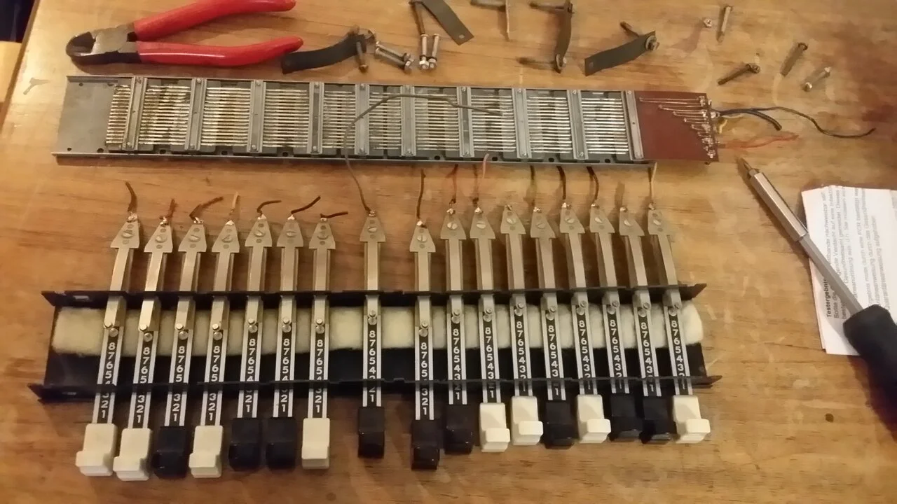 ich bin gerade dabei meine gechoppte M3 etwas aufzumöbeln. Die Drawbars hatte ich vor Jahren versehentlich mal zu weit auseinandergenommen und seitdem laufen die Schieber nicht mehr flüssig, bzw. haben Kontaktschwierigkeiten. Nun habe ich eine Einheit über Ebay-kleinanzeigen bekommen und wundere mich, dass die Register für die untere Tastatur nur 7 Zugriegel hat, meine hat 8? Auf dieversen Fotos habe ich beides gesehen, also sowohl 8, als auch 7 Zugriegel. Kann mich jemand aufklären, gibt es da verschiedene Versionen?