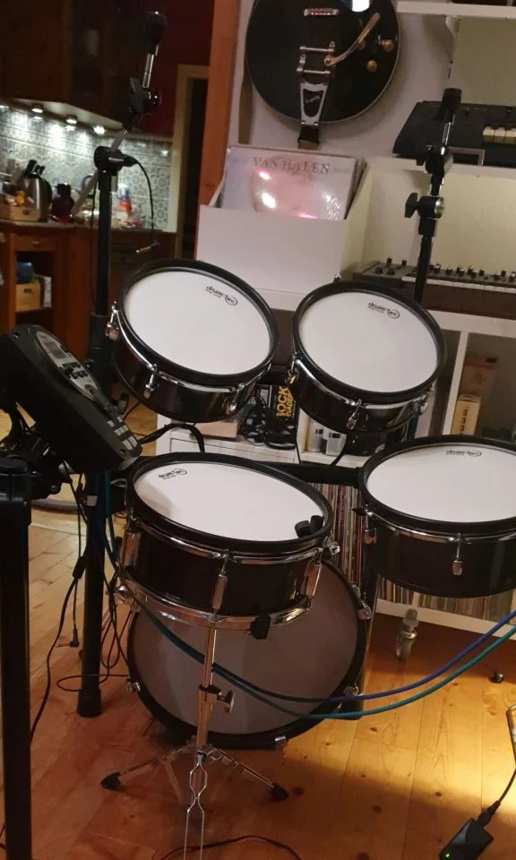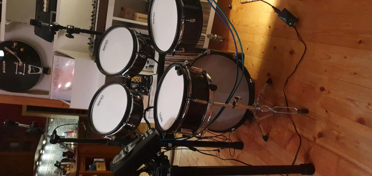 leider warte ich immer noch auf Teile, die Trigger Cones aus dem harten Schaumstoff schnitzen war nicht so von Erfolg gekrönt. Schneiden lieĂ sich das Zeug gut, aber der Feinschliff ging gar nicht. Habe jetzt wie empfohlen ein Set Kegel bestellt. Des Weitern habe ich die Moosgummi Entkoppler zugeschnitten und jeweils 2 aufeinander gelebt. Sie sind jetzt 2,8 cm hoch. Morgen werde ich die Klinken Buchsen der Snare und KickDrum verlöten und die Kessel nochmal mit Spachtel nach bearbeiten, da eine dĂŒnne schwarze Folie nix verzeiht. Dann gibts auch wieder neue Bilder. WĂ€hrend der Wartezeit habe ich mir verscheiden Cymbals angeschaut. Die Sets von Jobeky gefallen mir echt gut. Vielleicht spielt ja jemand von euch sowas und kann was dazu sagen!?