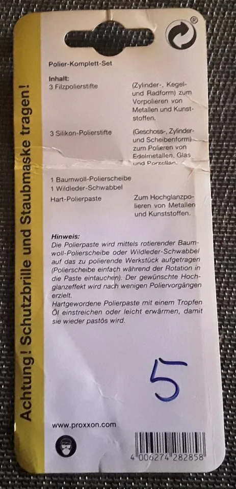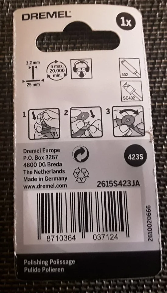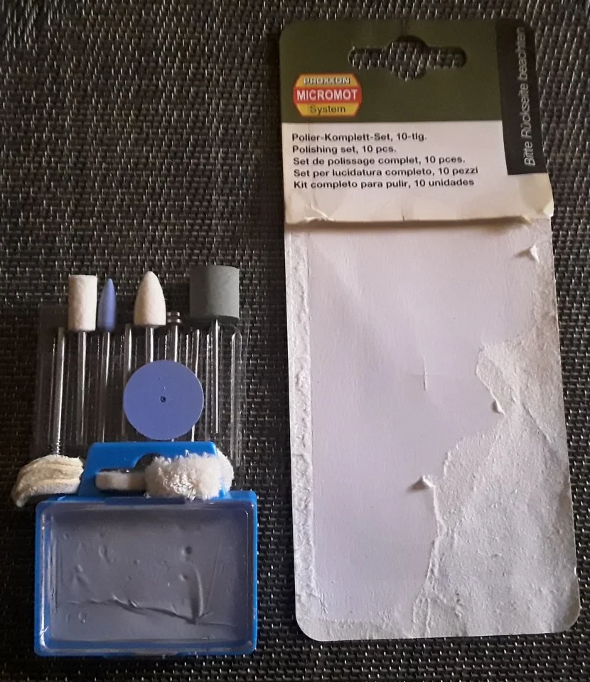 Jetzt habe ich gesehen, dass es für den Dremel einen Schleifteller mit 5 cm Durchmesser gibt.