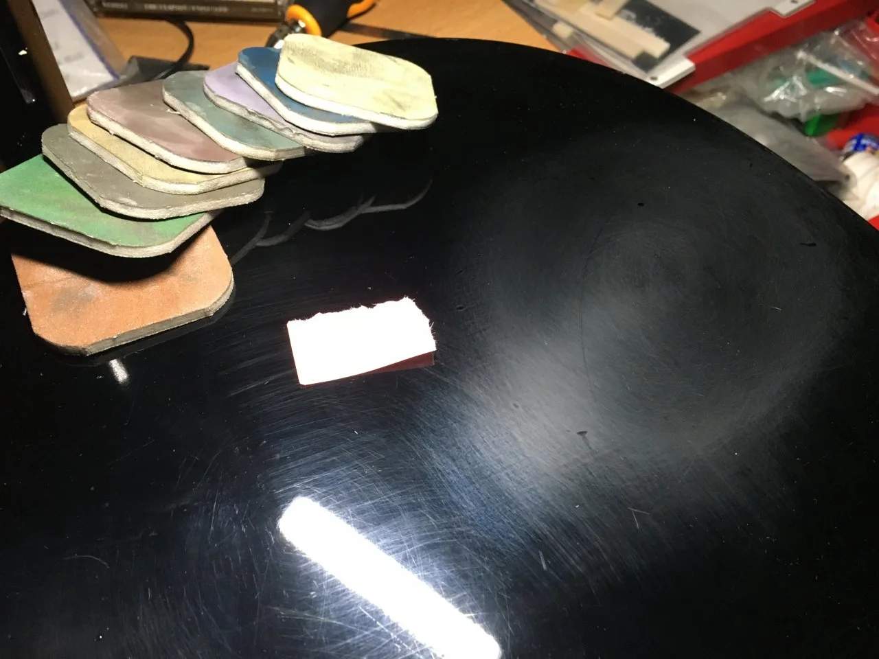 Ich habe hier einen Gitarrenbody, aus dem ich mit 1000er und 2000er Nasspapier einige Kratzer entfernt habe.