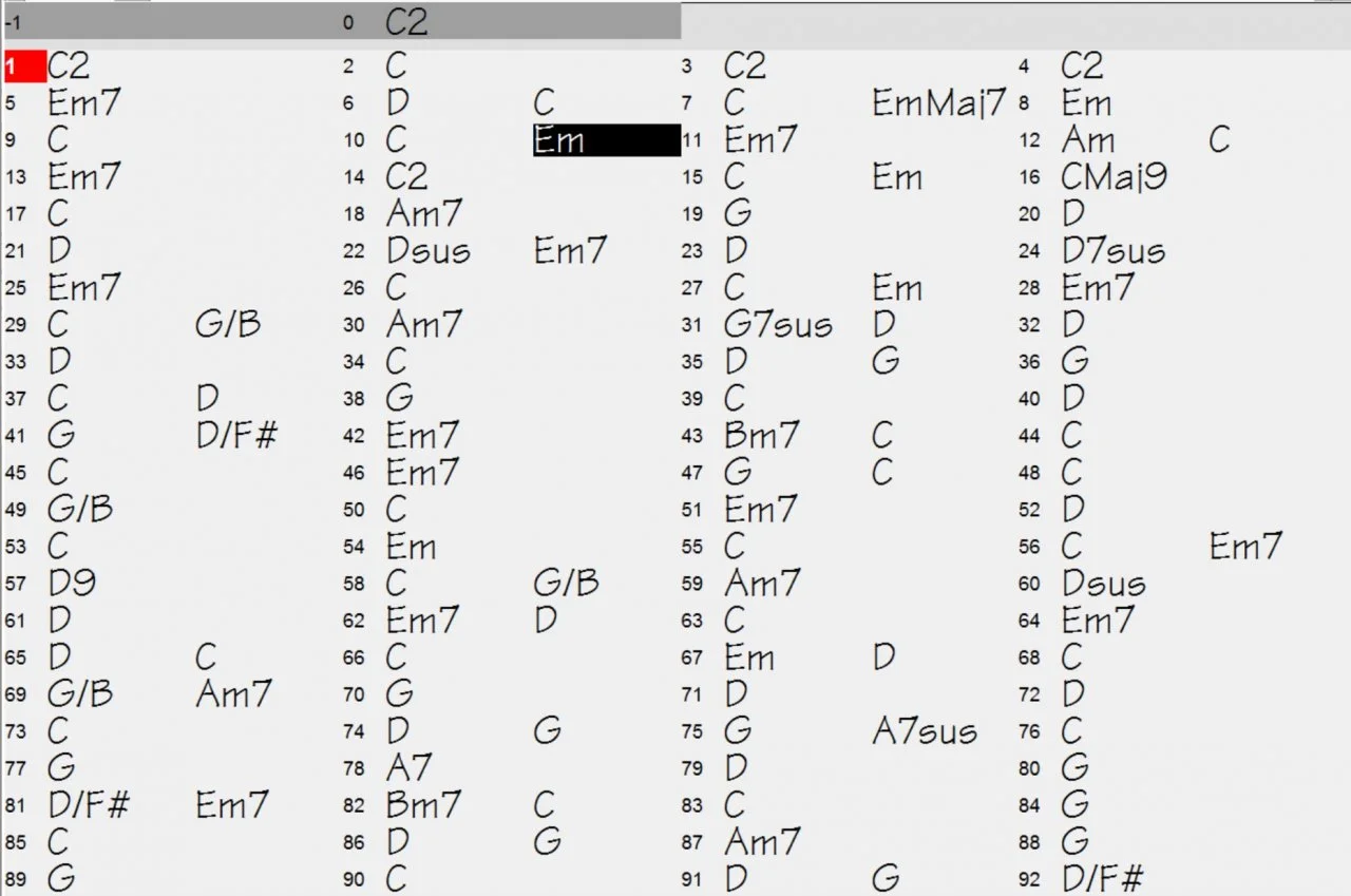 Wie kommt das schlaue Programm nur auf Em? Und, tut mir leid, mit dem Salat davor (C, C2, D, Em7, Emaj7 usw.) kann ich erst recht nichts anfangen. Und dem Rest dahinter eigentlich auch nicht viel...