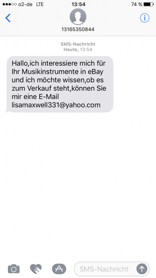 Diese Art von SMS kommen seit ca. 2 Monaten verstärkt auf meinem Handy an, immer im direkten Anschluß auf eine bei ebay-kleinanzeigen eingestellte Annonce und unabhängig ob Musikhardware, Hausrat oder Sportzubehör.