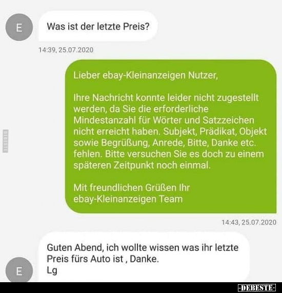 Hab das jetzt mal ausprobiert auf eine "Preis, Heute?"-Anfrage zu ner Gitarre von mir, und als Antwort kam das hier: