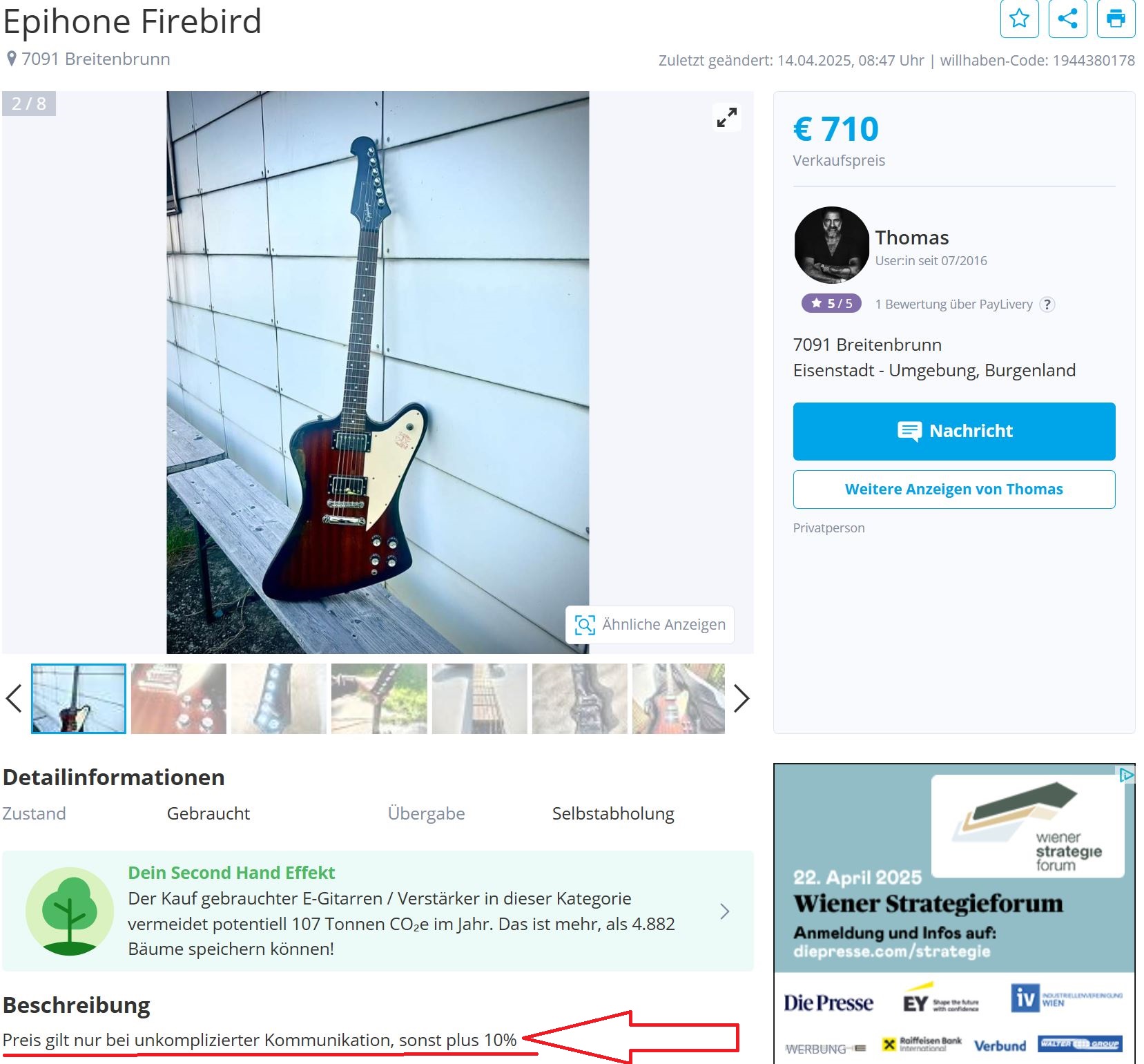 Wie auch immer, der Wert der Gitarre mit dem Fleck bewegt sich wohl irgendwo bei 0,00€ , dafür möchte er für die Upgrades gerne den Neupreis bezahlt bekommen.