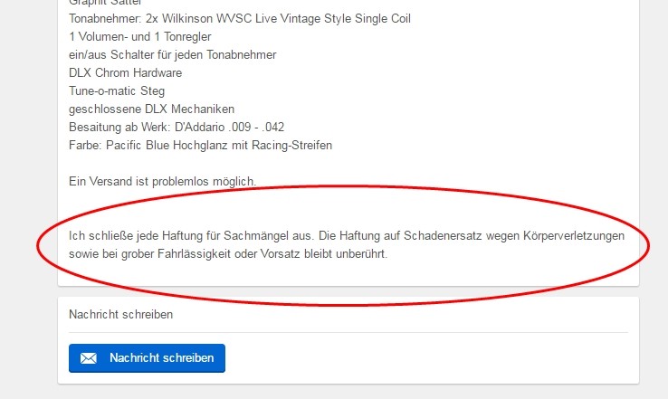 Neues aus dem Land der absurden Rechtserklärungen privater Kleinanzeigen Verkäufer....