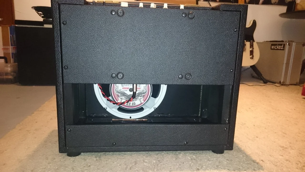 Ich bin so ein bißchen befangen und zwar weil ich blöderweise vermute, dass 2x 6V6 und diese kleinen Übertrager zerremässig in einem Amp nicht soviel bringen. Das ging mir schon mit dem Traynor Darkhorse so, ging mir mit meinem damaligen Princeton-Selbstbau so, geht mir auch ein wenig mit meinen beiden Excelsioren so (hier macht aber der Stock-15-Zöller ohnehin schneller schlapp).