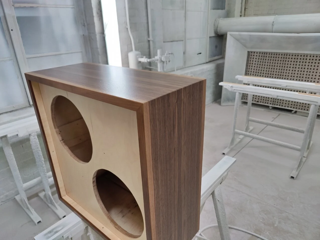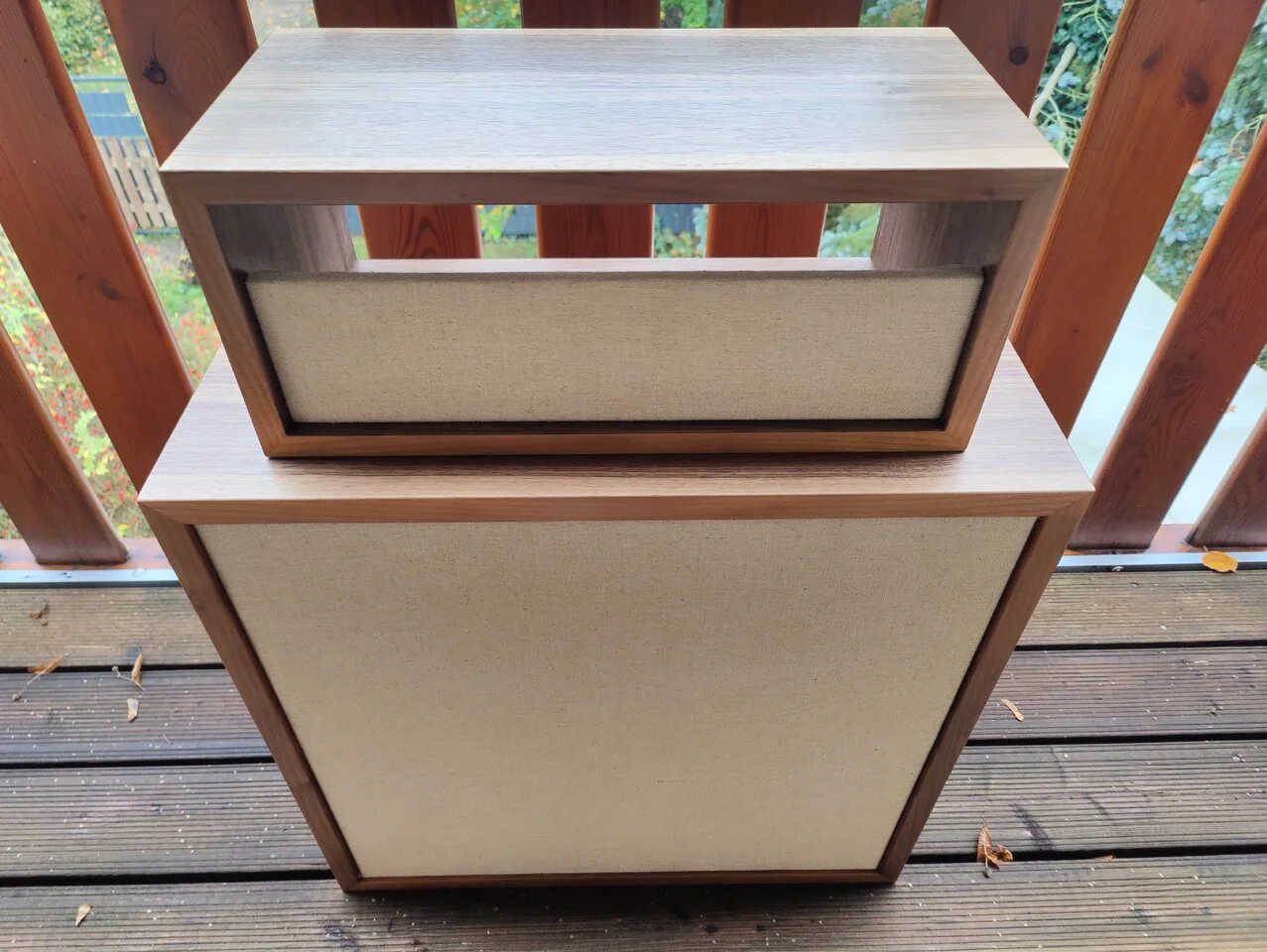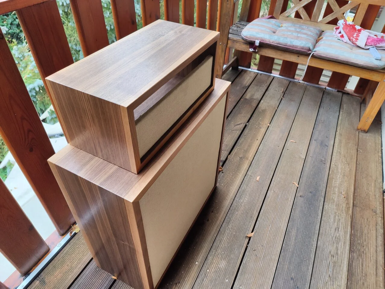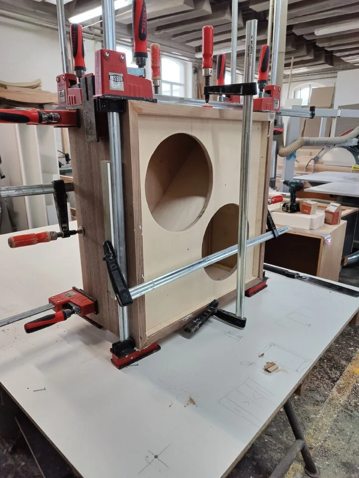 Es sollte was in Nussbaum werden. Von der Stange gibt es da nichts. Das ganze steht auch schon im PCL thread. Hier ist eventuell der bessere Platz. Speaker sind SICA Z007385 verbaut. Ich bin mehr als Happy mit dem Sound und Look. An Zeit hat mich( Tischler) der reine Bau mit Lack ca 7,5h gekostet. Material und Strom in etwa 110€.
