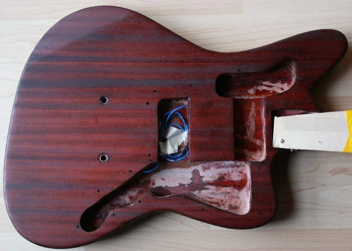 Werd wohl am Wochenende alles abschleifen, dann nochmal beizen und dann Öl nehmen. den Hals muss ich aber wohl lackieren, wegen des Decals.