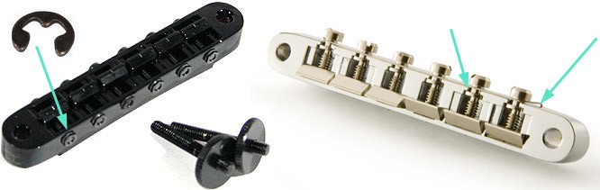 In welche Richtung sollten die Stellschrauben der Saitenreiter bei einer Gibson Les Paul zeigen und auf welcher Seite der Saitenreiter befindet sich das 90° abgewinkelte Ende der Saitenreiter?