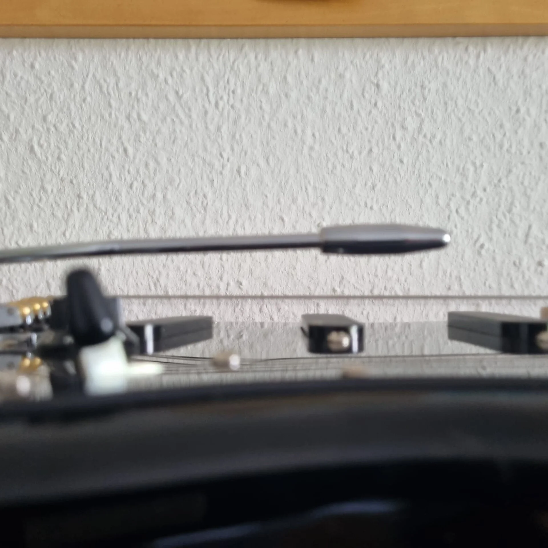 Das Problem ist, dass wenn der Tremolohebel gerade stramm eingeschraubt ist, er zu nah an den Saiten ist.
