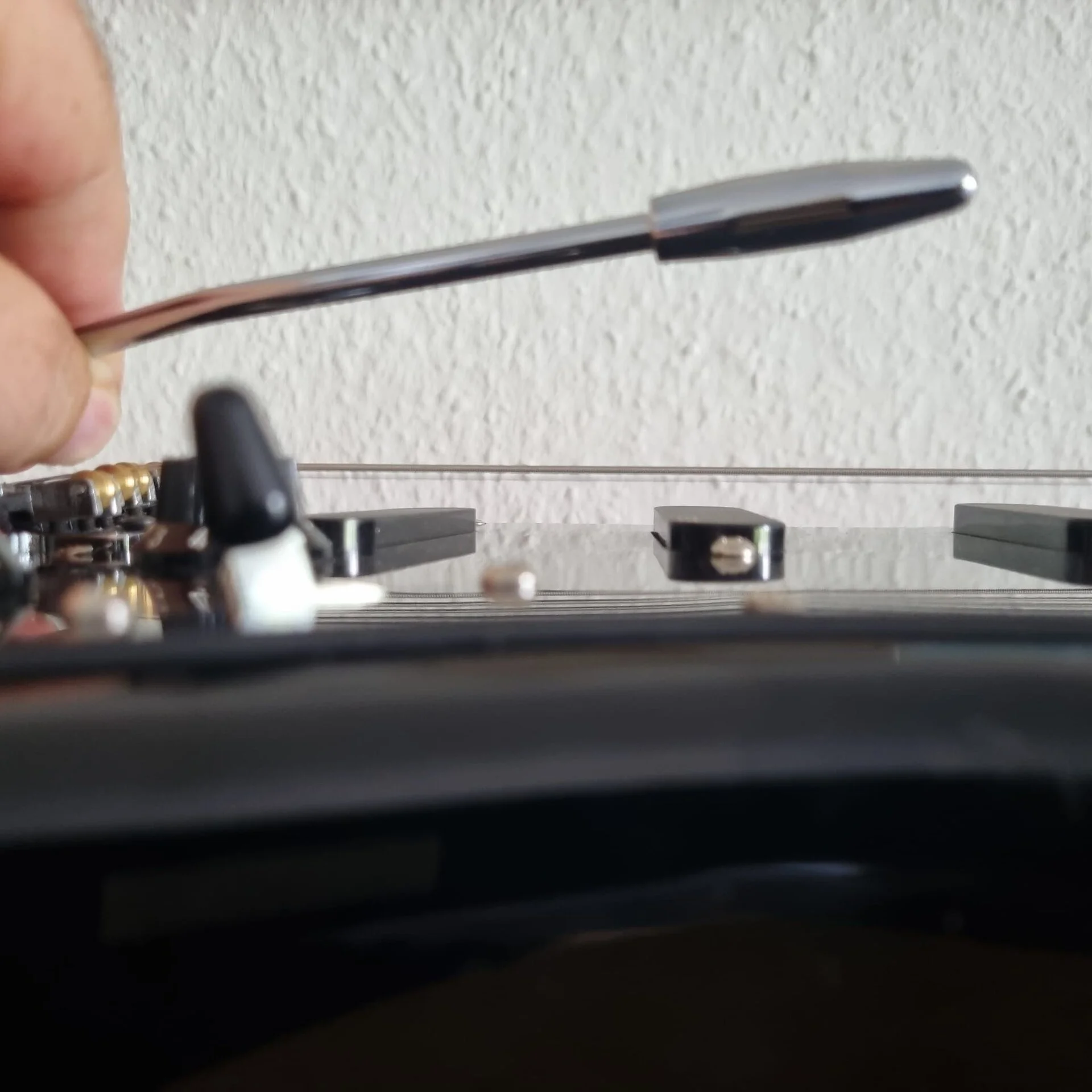 Welche Schraube muß ich drehen, damit der Abstand Hebel zu den Saiten größer wird? Ist es die in der "Mitte"? Muss ich dafür evtl. etwas anderes lösen?