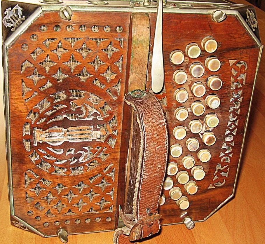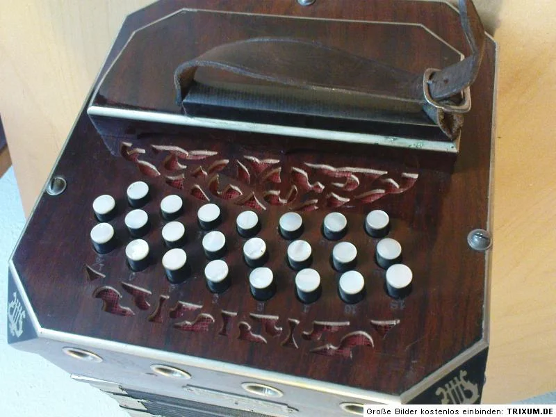Ich habe von meiner Tante ein altes Instrument (Bandoneon oder Konzertina) geschenkt bekommen. Mein verstorbener Onkel hat es vor langer Zeit wohl mal in Holland gekauft.