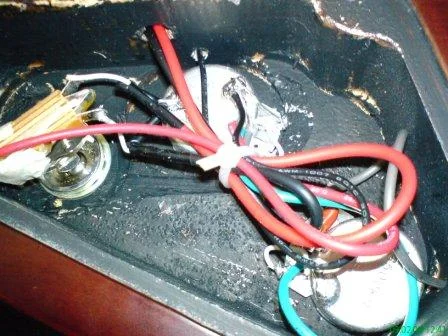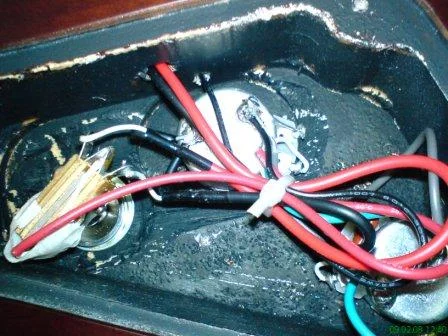 - obere Lötfahne des Tone-Potis ist nicht (mehr) mit dem Poti verlötet, von da aus geht ein Kabel zur Buchse