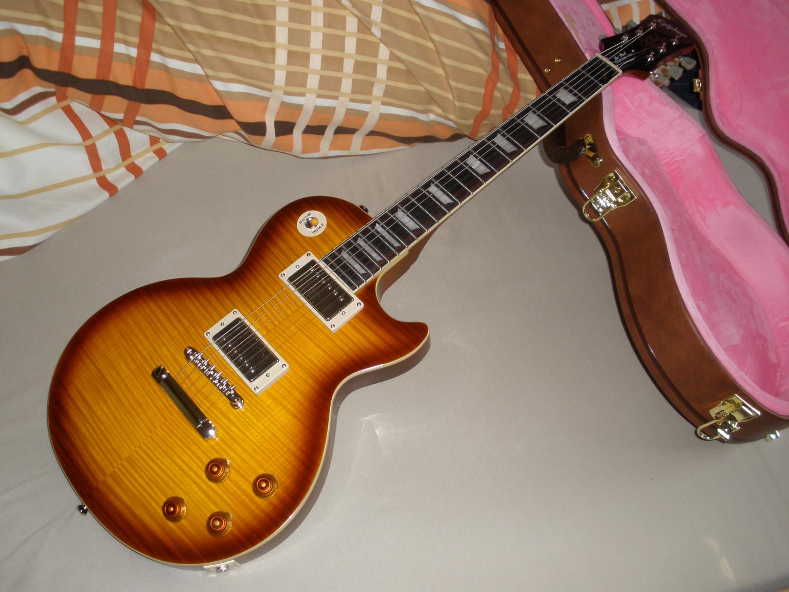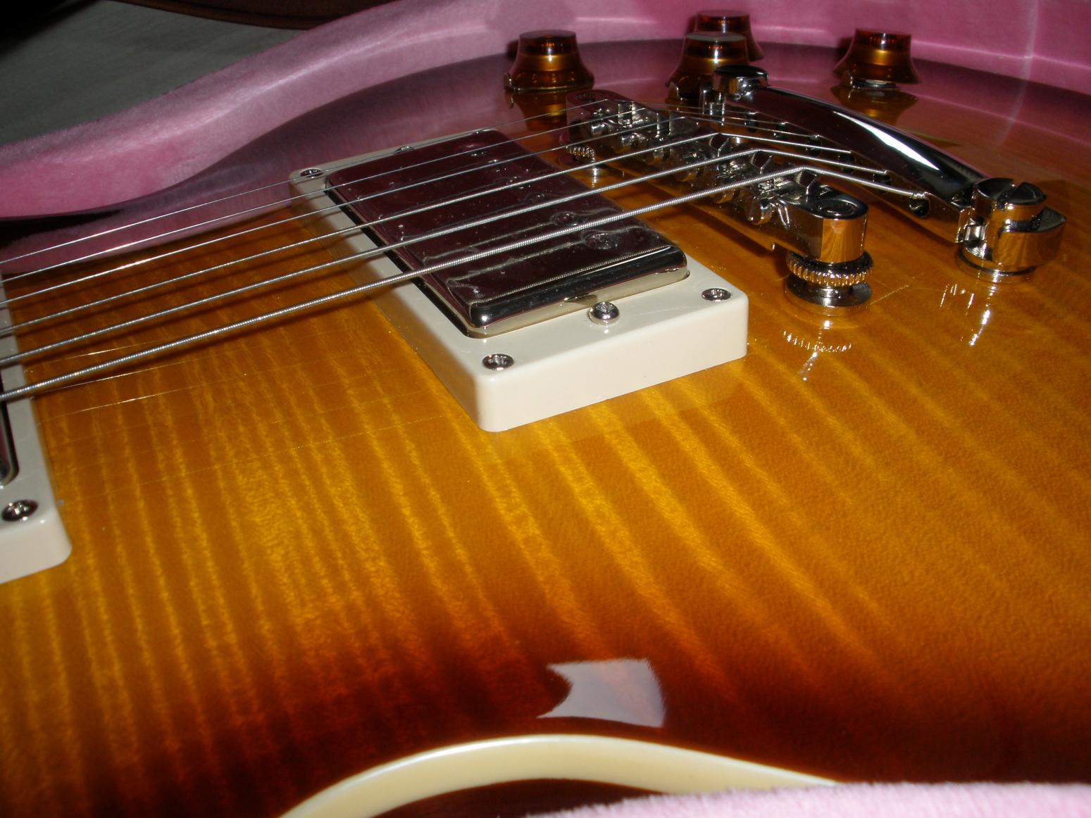 Ich lade euch noch ein Bild hoch, welches das Finish wirklich zu 100% trifft, das Bild ist zwar vom ersten Modell, aber die jetzige sieht wirklich ganz genauso aus, bis auf die Tatsache dass die Flames minimal weniger stark ausgeprägt wirken. Zu dem Thema der Limited Edition Modelle noch schnell, also was mich wundert, ist zum einen, dass die eben immer noch da sind, dachte, die gehen weg wie hubatz und war ja seit september damals noch täglich auf der Thomannseite....Zum anderen, ist mein Echtheitszertifikat eine Kopie. Also wenn ich mir die von Gibson angucke, ganz anders...Mein Zertifikat ist eine sehr dunkle Kopie....